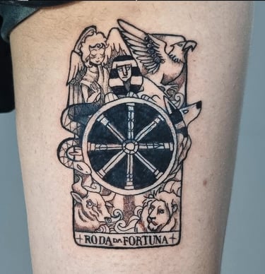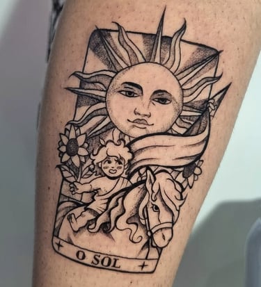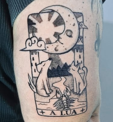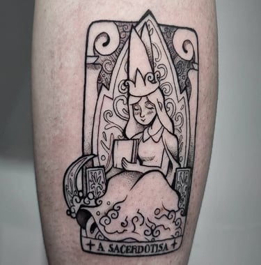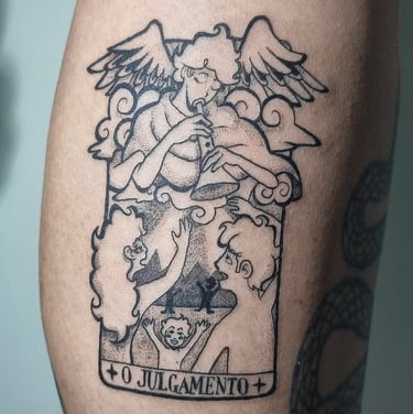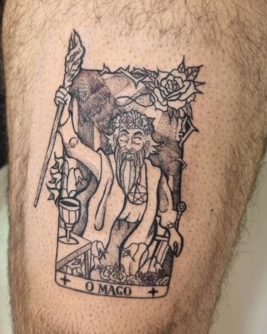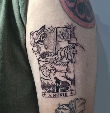 Begun in 2022, during my first year as a tattooer, Project Arcana functions as a shadow archive of my evolution (both technical and artistic) reflecting my growth and evolution over time. As of now, 74 of the 78 cards have been tattooed. Those who wish to become part of this living deck may explore the remaining available cards on the Available page.