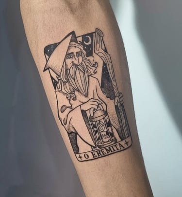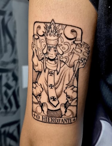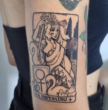 Project Arcana is an ongoing personal exploration devoted to the redesign and tattooing of the 78 tarot cards. Each piece is uniquely reimagined from the RiderβWaite deck, forming part of a singular, evolving tarot and translated into a one-of-a-kind tattoo that will never be repeated.
